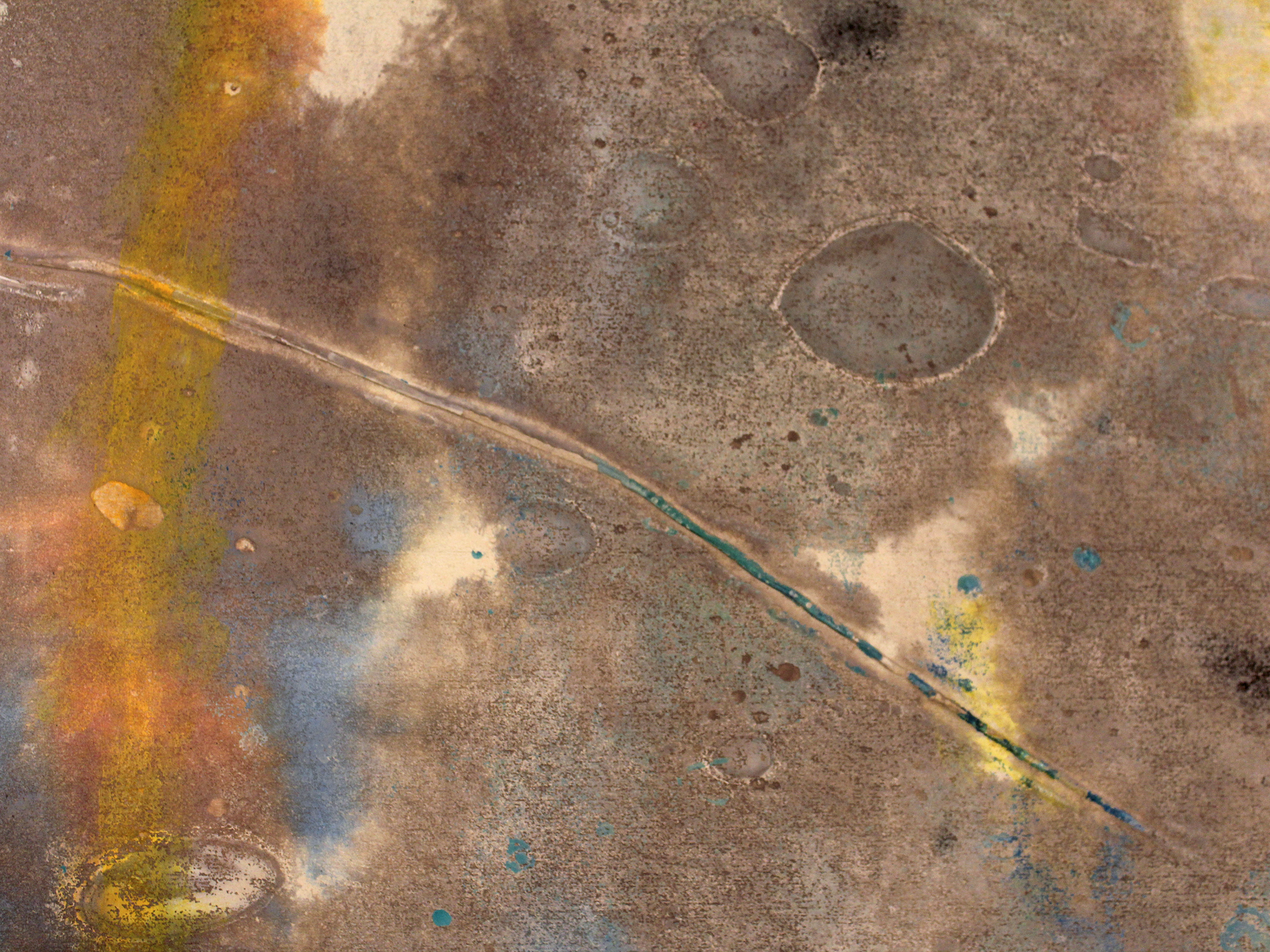 American artist, George Vander Sluis, has received a Fulbright and Ford Foundation fellowships as well as multiple mural commissions for the New York State Council of the Arts. Vander Sluis' work is in many major collections and he designed two iconic postage stamps as well as murals for USPS in Colorado and Wyoming. These large abstract paintings are from the artist's estate. Vander Sluis shows a beautiful understanding of material and color through these paintings. He creates a strong sense of texture throughout the canvas, with rough sand