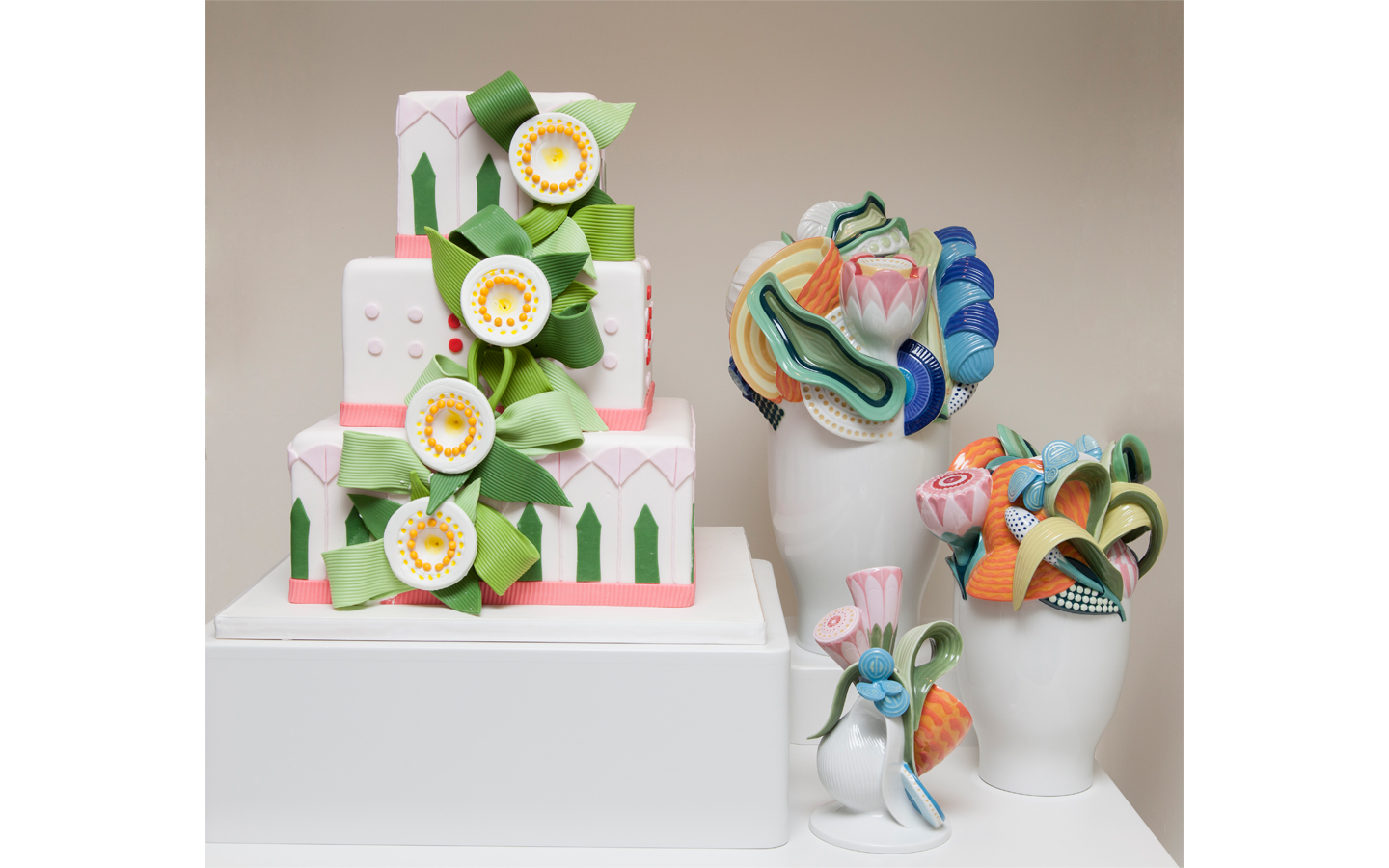 To celebrate their new Spring colors, we created a special window display and vignette for Lladró by combining spectacular porcelain pieces from their Naturofantastic Collection with colorful custom cakes designed by Carlo’s Bake Shop.